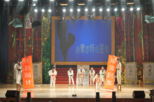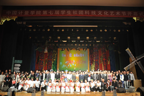 11月24日晚6:40,第七届中国我院学院社团科技文化艺术节开幕式在嘉量大会堂隆重举行。校党委副书记陶伟华、学生处处长范庆瑜等领导出席晚会现场,在杭各兄弟院校的社联代表及我校社联、社团的同学等一同观看了演出。 晚会开始前,陶伟华副书记为本届社团科技文化艺术节致词。讲话中,他充分肯定了我校社团近年来所取得成绩。为了充分发挥学生社团在培养大学生综合素质、营造校园文化氛围、传承学校特色文化等方面的作用,陶伟华对学生社团工作提出了三点希望:第一,要以学校实施文化建设五年行动计划为契机,结合大学生素质拓展计划的实施,以培养创新精神和实践能力为重点,把握好社团的发展方向,鼓励社团与专业、与社会的联系与合作,切实发挥社团在大学生人文素质教育中的作用;第二,要把推动学生德智体全面发展有机统一地设计在社团活动中,为同学全面成人、成才和就业服务,增强大学生就业和自主创新的意识和能力,推进素质教育;第三,要通过加强社团活动,进一步优化校园环境,营造一个健康文明、积极向上、充满青春活力和文化内涵的良好氛围,推动校风和学风建设向更深层次发展。 晚会以“四纪歌圩”为主线,共分霰雪纪、樱花纪、飞霞纪和流苏纪四个篇章展开。欢快活泼的舞蹈《欢乐总动员》拉开了整场晚会的序幕,西子书画社、古筝民乐团表演的《 梁祝书韵 》和秋之韵戏曲协会的戏曲《五女拜寿》选段古朴典雅向我们展示了华夏五千年的深厚底蕴;舞动逸族的《舞.动》曼妙的舞姿使人如临梦境;吉他协会、钢琴协会的《 音乐狂想曲》美妙的旋律使人陶醉;STAR.T街舞协会的《Dancing meeting》透射青春的激情与活力;由社联同学表演的相声《社团之争》,充分展现了学生踊跃参与社团的生动场面,引得台下笑声不断、掌声不断。最后社联与社团人共唱的一曲《爱、因为在心中》为晚会顺利的拉上了帷幕。 中国我院学院第七届社团科技文化艺术节为期一个月,将陆续开展子午剧社嘉量专场、零点调查协会第二届调研成果报告会、心青手语社百人手语大联欢、STAR.T街舞之夜、布艺协会“百花争艳”第二届花艺展等活动,营造精彩纷呈的校园文化氛围。