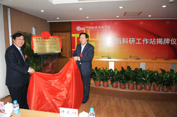 11月18日,我国首个标准化博士后科研工作站的揭牌仪式在中国标准化研究院举行。人力资源和社会保障部、教育部、国家质检总局、国家标准化管理委员会等相关领导出席了仪式。此次博士后科研工作站的揭牌填补了我国标准化领域博士后人才培养的空白,标志着标准化教育体系的进一步完善。我校标准化学院(筹)负责人李丹青被聘为中国标准化研究院博士后科研工作站学术委员会委员,参加了揭牌仪式相关活动。