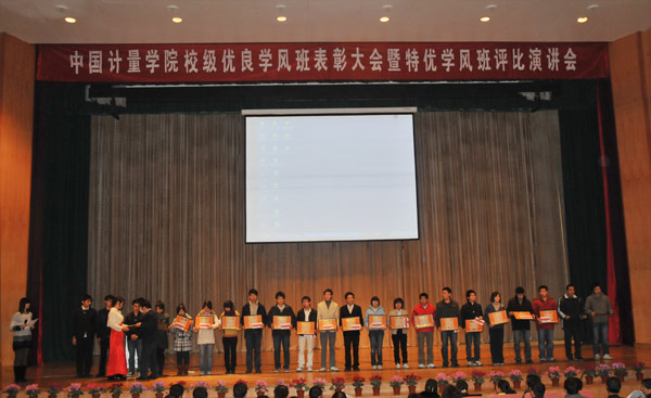 为加强我校学风建设,营造团结向上、勤奋进取、朝气蓬勃的学习氛围,12月5日晚,我校在嘉量大会堂举行了2007-2008学年校级优良学风班表彰大会暨特优学风班评比演讲会。校党委副书记陶伟华出席了大会。校学风建设领导小组成员,各二级学院分管学生工作的党总支书记、辅导员、班级投票代表及1000多名师生参加了大会。 会上,陶伟华副书记作了重要讲话。他首先代表学校学风建设工作领导小组,对获得校级“优良学风班”的班级表示祝贺,对所有积极投身于创建优良学风的师生表示感谢。他说,加强学风建设是党的思想政治工作的内在要求。学风建设关系到高校育人目标的实现,关系到高校的生存和可持续发展,是学校永恒的主题。因此,进一步加强学风建设,培养出符合社会要求的高素质人才,对于学校创建国内知名的教学研究型大学,具有十分重要的现实意义和深远的历史意义。长期以来,学校投入大量资金,开展学风建设评估活动,进行优良学风评比表彰,鼓励二级学院和广大师生积极投入学风建设当中,积极从新生教育、素质教育、学业规划教育、三自教育、师德建设等不同方面进行建设优良学风的探索和实践,取得了十分明显的效果。各二级学院推出了内容丰富、形式多样的课外科技创新实践、学科竞赛、文化艺术节等活动,提高了学生建设优良学风的积极性,广大同学的学习态度进一步端正,学习积极性和主动性进一步增强,学习风气进一步改善,学习效果和成绩进一步提升,综合素质和竞争能力进一步增强。 为了切实做好下一阶段的学风建设,陶伟华副书记提出了三点要求:第一,各二级学院、各部门、各级团学组织要全面、深入、有效地贯彻落实《中国我院学院文化建设行动计划》,继承和发扬学校优良的传统和精神,切实加强对学风建设的领导,加大对学风建设的投入,深入实施二级学院学风建设评估,丰富和完善学风建设的具体制度与实施方案;积极引导广大师生充分参与特优学风班和优良学风班创建活动;大力加强学生文化素质教育,以进一步增强师生对学校“一训三风”的认同,进一步实践和丰富优良的校风、教风、学风,增强为学校发展追求卓越、无私奉献的责任心、荣誉感和凝聚力,努力形成优良学风建设的长效机制,为学生成人成才创造优秀的外部环境。第二,要充分发挥广大教师的主导作用,强化“尚德乐业,博学善教”的教风,鼓励以教授为骨干的优秀教师代表,用高尚的师德、高超的学识,较高的综合素质影响学生,服务学生,为学生的道德行为提供示范。广大学生党员和团学干部要强化责任意识,充分发挥自己作为优良学风建设的中坚力量的作用,团结带领广大同学端正学习态度,增强学习积极性和主动性,遵守课堂纪律和考风考纪,营造优良学习风气,要讲究学风建设的方法和艺术,努力提高自身综合素质和竞争能力,帮助、带动班集体共同向上,争取自身发展和班级学风建设的双丰收。第三,广大同学尤其是大一学生,要充分认识学风建设的重要性、必要性,积极投身于学风建设系列活动中,在课堂上、实践中掌握丰富的文化知识,要努力加强自身品德修养,规范自身日常行为,充分展示量院学子“励志笃学,求真诚行”的良好精神风貌。陶伟华副书记还希望同学们继续发扬“严格严谨,求实求新”的校风,勇于创新,追求卓越,为实现学校的更好更快发展而贡献力量。 会上,学生处处长范庆瑜宣读了荣获2007-2008学年校级优良学风班的班级名单,陶伟华副书记为获奖的22个班级颁奖。 在接下来举行的特优学风班评比演讲会中,参评的22个班级通过幻灯片向在场的老师和同学展示了健康向上、团结奋进的班级风采。 演讲结束后,校学风建设领导小组成员和全校班级投票代表根据现场的演讲情况进行了投票,评出了07机电2、07热能1、05电科1、06光信2、07质量1、05国贸1、06食品1、06产权1、06公管1、06英语3、06试点2等11个班级为07-08学年校级“特优学风班”。