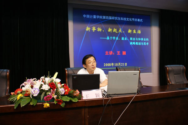 在量院喜迎三十华诞之际,我校第四届研究生科技文化节于2008年10月21日在闻厅二楼报告厅开幕。本届研究生科技文化节以“意气风发,锐意进取;闪‘硕’青春,科技登峰”为主题,将在一个月的时间里开展一系列科技学术、文化交流和体育等活动,活跃校园学术氛围,提高研究生创新能力,增强研究生综合素质,展现研究生风采,为三十周年校庆增光添彩。 校党委副书记陶伟华、副校长蒋家新,宣传部、校团委和研究生部负责人等应邀出席了开幕式。浙江大学、浙江工业大学、浙江工商大学等兄弟院校的研究生会代表和我校学生会代表也作为嘉宾参加了开幕式。 陶伟华在开幕式致辞中代表学校对第四届研究生科技文化节的举行表示热烈祝贺。他简要介绍了我校研究生教育发展历程,指出我校研究生教育已进入了快速发展阶段,生源结构和质量不断提升。目前,我校共有涉及4大学科门类的14个硕士学位授权学科,在校研究生400余人。我校研究生在科学研究方面成果显著,除发表的学术论文被SCI、EI等收录外,还获得了包括中国仪器仪表学会一等、二等奖学金,全国“挑战杯”大学生课外学术科技竞赛三等奖和ADI中国大学生科技竞赛一等奖等众多奖项。所有这些都充分体现并展示了我校研究生教育的特色和优势。科技文化节作为研究生自己的节日,内容丰富多彩、项目精彩纷呈,不仅有校内外教师的学术讲座,也有研究生自己的学术讲坛等,给研究生展示自我提供了很好的平台,希望全体研究生能够积极投身到科技文化节中,充分发挥自己的聪明才智、展示自己的才华、为活跃校园科技文化氛围留下浓墨重彩的一笔。 蒋家新为我校第四届研究生科技文化节开幕式剪彩。浙江工业大学研究生会主席李学鹏代表兄弟院校研究生在开幕式上发言,预祝我校第四届研究生科技文化节取得圆满成功。 应我校研究生会的邀请,杭州电子科技大学高等教育研究所所长王颖教授针对研究生的学业、就业和职业,通过《新事物、新起点、新生活——战略视角下的研究生学业、就业、职业和事业规划与思考》讲座与广大研究生进行了交流。 他首先就21世纪需要的七类人才进行了说明,一是跨领域的综合型人才;二是理论与实践相结合的创新型人才;三是基础扎实+融会贯通型人才;四是学习型人才;五是积极、主动、乐观型人才;六是沟通与合作型人才;七是智商 + 情商 + 灵商型人才。他对“研究生是什么”、“读研究生为什么”和“怎么读研究生”进行了分析,鼓励大家要做“四好”研究生,一是学会做人:树立正确的人生观、事业观、职业观、学业观,做一个诚信为先的好人;二是学会与人相处:表达能力绝不只是“口才”,它反映出你的自信和热情;三是学会学习:通过研究来掌握知识,运用知识,在学习中摸索和完善适合自己的学习方法;四是学习知识:对专业知识的掌握,对科研工作能力的养成。针对研究生就业、职业和事业,他指出研究生在做规划时一是要择己所爱:调查表明兴趣与成功机率有着明显的正相关性;二是择己所长:运用比较优势原理充分分析别人与自己,选择体现个人优势的行业;三是择世所需:要有长远的战略目光,分析、预测未来行业或者职业发展方向;四是择己所利:职业是个人谋生的手段,目的在于追求个人幸福。他鼓励我校研究生要认真对待今天,积极谋划未来,相信自己,战胜自己,开创属于自己的天地。王颖教授此次讲座的音像资料将于近日整理后发布供师生学习。 最后,在热烈的掌声中,我校第四届研究生科技文化节开幕式顺利结束。广大研究生表示一定认真学习、领会领导的讲话精神,沉潜为学,培养高尚、坚实的学术素养,不断拓展学术视野,争创爱校荣校的成果,力争成为综合型、学习型和创新型人才,做优秀的我院人,为学校和社会发展做贡献。