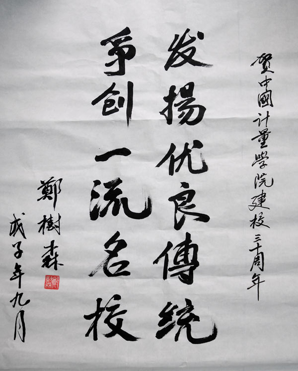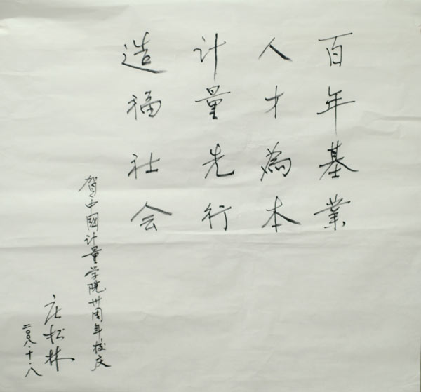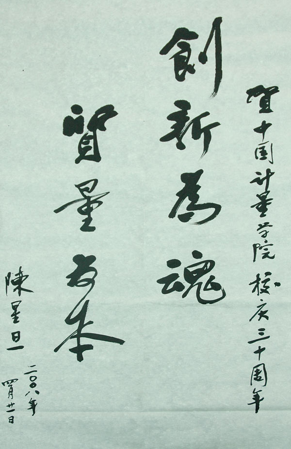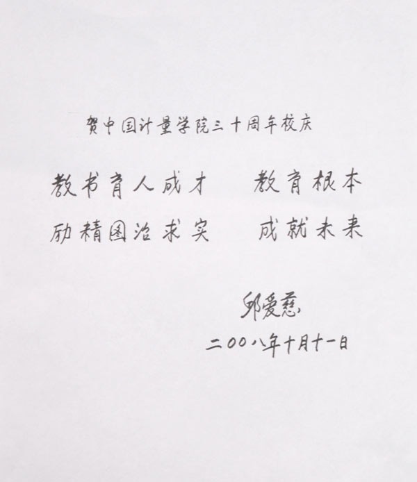 2008年10月,中国我院学院这所我国质量监督检验检疫行业唯一的本科院校迎来了自己30岁的生日。期间,中国科学院和中国工程院院士纷纷题词,祝贺学校建校30周年。他们分别是: 十一届全国人大常委会副委员长,中国科学院院长路甬祥,题词为“创新我院科技,培养优秀人才”; 中国工程院常务副院长潘云鹤院士,题词为“办特色大学,育一流人才”; 中国工程院院士、光学专家庄松林,题词为“百年基业,人才为本,我院先行,造福社会”; 中国工程院院士、草原学家任继周,题词为“长为国计,厚德无量”; 中国工程院院士、软件与人工智能专家何新贵,题词为“继往开来,再创辉煌”; 中国工程院院士、工程热物理专家岑可法,题词为“努力创新,科学我院,为节能减排做出更大贡献”; 中国工程院院士、核技术应用专家张信威,题词为“我院科技是科学技术和社会生产发展的基础”; 中国工程院院士、我院专家张钟华,题词为“自强不息,人文日新”; 中国工程院院士、电力电子技术专家汪槱生,题词为“争世界一流,创中国名牌”; 中国工程院院士、高功率脉冲技术和强流电子束加速器专家邱爱慈,题词为“教书育人成才,教育根本,励精图治求实,成就未来”; 中国科学院院士、核农学家陈子元,题词为“百年大计,教育为本,宇宙无量,日新月异”; 中国工程院院士、茶学专家、中国茶叶学会名誉理事长和国际茶叶协会副主席陈宗懋,题词为“培育特色人才,服务质检事业”; 中国科学院院士、应用光学专家陈星旦,题词为“创新为魂,质量为本”; 中国工程院院士、肝胆胰外科及肝移植领域专家郑树森,题词为“发扬优良传统,争创一流名校”。