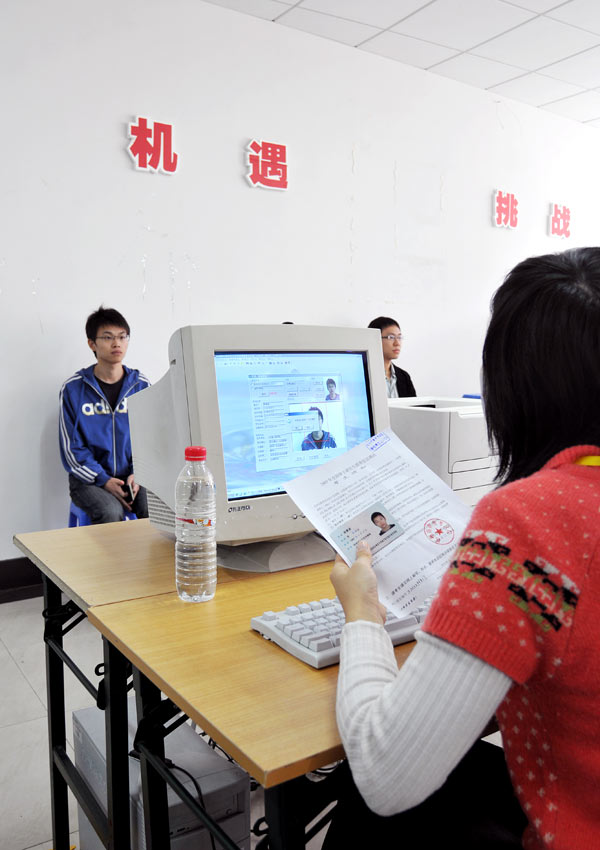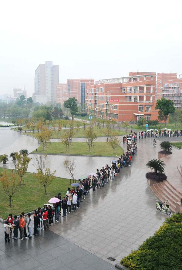 11月5日至6日,2009年全国硕士研究生考生信息确认工作在我校进行,这已经是我校连续第4年承担了下沙点的研究生入学考试网上报名信息确认工作。 5日早上8点多,确认信息的考生队伍已从启明活动中心沿北斗路一直排到了至勤道。而第一位进行确认信息的考生,清晨5点半就等在确认现场门口了。不少考生认为学校和杭州市教育考试院的这一举措极大地方便了下沙地区的考生进行信息确认,是关心学生,为学生提供服务的好做法。 根据网上报名的数据显示,今年报考人数达16300余名,比去年增加了2000余人。此次,杭州市教育考试院共安排了20多位工作人员来我校为考生进行信息确认工作。为了确保此次考生信息确认工作安全有序,我校共派出了20位校卫人员,负责现场秩序的维护,协助发放《2009年全国硕士研究生报考信息确认考生须知》,并引导考生进行验证缴费、电子摄像等工作,使确认现场忙而不乱。