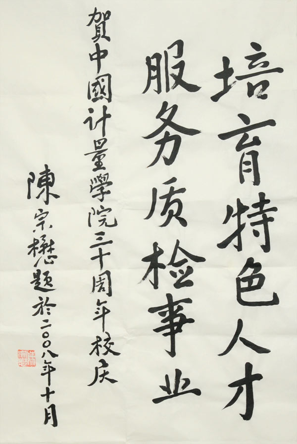在30周年校庆即将来临之际,我校又陆续收到社会知名人士的校庆题词。他们分别是: 十一届全国人大常委会副委员长,中国科学院院长路甬祥,题词为“创新我院科技,培养优秀人才”;中国工程院常务副院长潘云鹤院士,题词为“办特色大学,育一流人才”;中国工程院院士,核技术应用专家张信威,题词为“我院科技是科学技术和社会生产发展的基础”;中国农业科学院茶叶研究所、中国茶叶学会名誉理事长和国际茶叶协会副主席陈宗懋研究员,题词为“培育特色人才,服务质检事业”;原香港新华社副社长、浙江大学党委书记,浙江省政府特别顾问张浚生教授,题词为“三十春秋硕果累累,任重道远更著辉煌”。