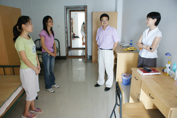 9月7日,校党委副书记陶伟华在研究生部负责人陪同下来到研究生公寓看望我校2008级研究生新生,给新入学的研究生送去关怀。陶伟华详细询问了研究生的生活和学习情况,要求同学们相互关心、爱护,共同营造温馨和谐的生活学习环境。他希望广大研究生在两年半的研究生求学期间,强化基础理论学习,锻炼实际动手能力,努力培养创新意识和创新能力,多出创新性成果,为学校争光,为社会做贡献。