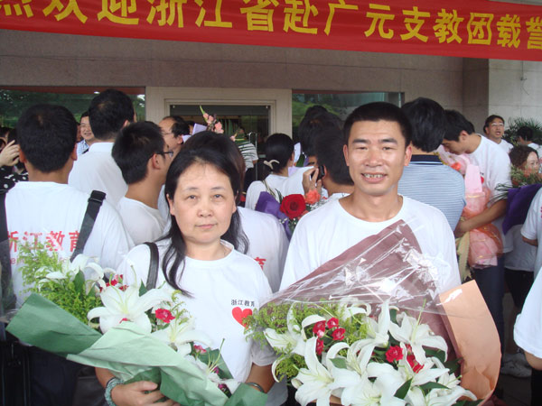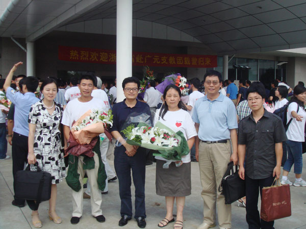7月3日下午,浙江省赴广元支教团在顺利完成为期一个月的支教活动后载誉归来,我校人文社科学院心理咨询中心冯铁蕾副教授、基建处祝红辉随机回到杭州。校党委副书记陶伟华、党办校办主任郝敬习、人事处处长王政贵、人文社科学院副院长何兆泉等前往机场迎接。 汶川大地震发生后,浙江省教育系统积极而迅速投入到帮助灾区人民重建家园的行动中去。6月6日,由省教育厅组织的“浙江省赴广元支教团”首批3支小分队83名教师启程奔赴四川广元灾区,开展教学辅导、心理援助、校园重建等支教工作。我校教师冯铁蕾、祝红辉分别作为心理援助小分队和工程技术小分队成员,参与灾区学生的心理抚慰、疏导和教室建设管理、学校重建规划制订等工作。在支教活动中,两位教师不畏艰辛,以饱满的工作热情为灾区人民排忧解难,展示了我校教师良好的精神风貌和形象风采,得到了灾区政府和人民的高度赞扬,为我校赢得了荣誉。 省委教育工委副书记、教育厅副厅长蒋胜祥,教育厅副厅长褚子育出席欢迎仪式,代表省委教育工委、省教育厅欢迎支教团成员凯旋归来,并表示崇高的敬意和衷心的感谢。