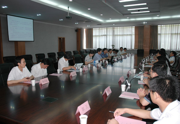 7月10日上午,南昌航空大学副校长高益庆教授一行来到我校,就我校本科教学改革、科研与学科建设、重点实验室建设等方面进行了考察和交流。副校长侯宇、蒋家新出席交流会,党办校办、教务处、科技处、研究生部、机电学院、计测学院、信息学院、光电学院、材料学院等负责人参加了会议。 会上,侯宇对高益庆一行的到来表示了热烈的欢迎。同时,对高益庆教授为我校本科教学水平评估所付出的辛劳和提供的帮助表示了感谢。侯宇向客人介绍了学校的基本情况,并从专业建设、课程建设、教材建设、教改研究、学生课外科技活动等方面介绍了我校的教学情况,同时,汇报了我校近年来本科教学改革与建设工作的开展情况。蒋家新向客人介绍了我校的学科建设与学位工作、研究生教育、科研工作和重点实验室建设等情况。各相关部门负责人和客人就教学、科研等问题进行了交流和探讨。 会后,高益庆一行在侯宇的陪同下,参观了国家磁性材料检测中心、我院测试工程学院实验室、省重中之重“仪器科学与技术”学科实验室、“现代我院测试技术与仪器”重点实验室,并与实验室负责人进行了深入地交流。