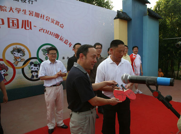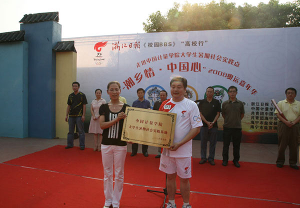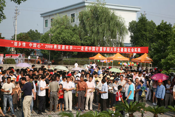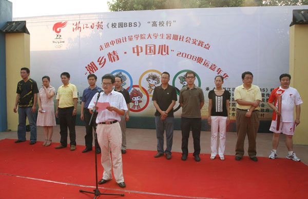 7月23日,海宁盐官镇桃园村的文化中心广场上迎来了一场盛大的奥运嘉年华。中国我院学院的大学生和近千名桃园村的农民朋友们欢聚在一起,用自己独特的方式迎接奥运、参与奥运、分享奥运。 本次活动由浙江日报、中国我院学院、海宁市委宣传部主办,浙江日报《校园BBS》栏目、中国我院学院党委宣传部和团委、海宁团市委、海宁市盐官镇和桃园村共同承办。浙江日报编委会委员、编辑中心主任李良,中国我院学院党委副书记陶伟华,中共海宁市委常委、宣传部部长沈炳忠,奥运火炬手、中共盐官镇党委委员、桃园村党委书记金正华等领导和嘉宾出席开幕式并讲话。 陶伟华在讲话中指出,此次活动不仅是我校2008年大学生暑期社会实践的一次重大活动,更是一场大学生与农民朋友共同参与的体育竞技盛会,是一场友谊的盛会、欢乐的盛会。通过在活动中丰富生动的亲身实践,让每个人在欢乐中体验公平竞争、奋勇拼搏的体育精神;理解更高、更快、更强,重在参与的奥运精神;诠释团结、友谊、进步、和谐、参与和梦想这一奥林匹克精神的实质与价值观;表达全国人民迎接奥运到来的喜悦心情和追求美好未来的共同愿望。他说,这种与媒体充分互动的社会实践活动模式是我校大学生暑期社会实践活动的一次全新尝试,也是我校对外宣传工作的一次突破。他希望活动的开展能够有效创新大学生社会实践活动的内容和形式,丰富活动的载体,拓宽活动的思路,提升活动的效果;希望活动的开展能够进一步促进浙江省农村文化体育活动的开展,为传播先进文化、丰富农村的文化生活和精神生活起到积极的作用。 开幕式上,学校团委书记刘秀丽与桃园村党委书记金正华共同为“中国我院学院大学生暑期社会实践基地”揭牌。浙江日报编委会委员、编辑中心主任李良向桃园村赠送了我省奥运冠军吕林亲笔签名的两块乒乓球拍。 开幕式结束后,奥运嘉年华的各项活动精彩上演。趣味运动会是此次奥运嘉年华的重头戏。500多张印有奥运知识竞答题目的书签在活动一开始就被热情的村民一扫而空;五环送福、灌篮高手、更快更高更强等项目的活动现场一转眼就排起了长龙;而最吸引人莫过于根据奥运比赛项目而模拟设置的趣味举重、障碍赛跑和负重接力等比赛,大学生和农民朋友们各自组队,同台竞技,加油声、呐喊声响成一片。村民们的热情让活动举办方的工作人员都有点措手不及。“这么热的天气,没想到会有这么多人来参加活动,看来奥运的魅力真不小啊!”桃园村团总支书记的张明说。 “比技巧、比速度,大学生略胜一筹;比力量、比耐受力,显然农民朋友更有优势。”趣味运动会的现场总指挥、中国我院学院青年志愿者总队队长孙健峰说,“篮球赛和障碍赛跑都是大学生获胜,但在举重和负重接力中我们就败下阵来了。我们的一个队员在跑的时候没抱住西瓜,壮烈牺牲了一个。” 热火朝天的比赛扣人心弦,而另一边的“奥林匹克运动发展史及2008年北京奥运会大型展版”也吸引了很多村民朋友观看。奥林匹克运动发展史的介绍,北京奥运会会徽、主题口号、吉祥物、火炬、体育图标的呈现,还有奥运名人堂等板块的展出,给桃园村的村民带来了一堂生动的奥运知识普及课。 在奥运嘉年华活动现场,祝福奥运百米长卷签名活动同时举行。浙江省嘉兴市农民火炬手金正华、75岁的桃园村农民金继清、中国我院学院的大学生徐慧,还有晏梦洁、史颖珠、曹彬杰……这一个个看似毫不相干的名字,共同出现在这幅长卷中。“北京加油、中国必胜”“用我们的激情让08奥运更加精彩”“我们是冠军”……这幅承载了1000多名大学生和农民朋友祝福与签名的长卷将委托当选为奥运裁判的中国我院学院体军部副主任邬燕红教授带去北京。 在当天晚上举行的文艺晚会中,有两位演员最让人最羡慕。其中一位自然就是奥运会沙滩排球项目的裁判邬燕红,另一位则是奥运会老山自行车场馆志愿者、中国我院学院外国语学院的大三学生卓小红。邬老师在接受晚会主持人采访时说,能够成为奥运裁判心情自然激动,但随着奥运会开幕时间的临近,更多的感受是责任,无形的压力也随之而来。“在我去北京之前的这个最后阶段,看到这么多人,从城市到乡村,从大学生到普通的农民,对奥运的一种关注,对我来说是一种莫大的鼓励和力量。”而对卓小红而言,更多的则是感到幸运。掌握英语和法语两种外语而又有武术功底的她,是从1万4千多名网络报名者中被最终选拔出来的100名浙江省赴北京奥运会服务的志愿者之一。她说,她最大的愿望就是能将我们中国人最诚挚、最美丽的笑脸带给全世界,因为微笑就是北京最好的名片。 “……二零零八奥运会,我们就是啦啦队,锣鼓齐鸣扬国威,加油!中国健儿本领强,全民健身促成长,娃娃也是后备军,上场!……”得知奥运嘉年华活动文艺晚会要举行,中国我院学院赴海宁实践小分队的屠鹏泓、胡敏、洪令川、孔益侃在短短的三天时间里就创作排练了这首三句半《为奥运加油》。孔益侃说:“虽然我们不能去到奥运会现场为中国健儿加油助威,但今天我们能在这里用自己的方式唱出自己的心声同样感到很开心。奥运加油,中国加油!” 诗朗诵、歌曲、舞蹈、情景剧,丰富的节目精彩上演,而桃园村的村民们也用民歌、越剧等形式表达了他们对奥运