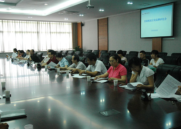 6月24日上午,我校在闻厅一楼会议室召开了首届校园文化品牌评比会。各二级学院分管学生工作负责人和相关职能部门负责人对申报的11个校园文化品牌项目进行评审。会议由校党委副书记陶伟华主持。