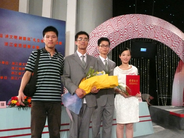 5月6日下午,由我校04法学2班金晶、05安全2班孙健峰、05食品1班杨扬和周晶等4位同学组成的学生代表队在全国“迎奥运讲文明树新风”礼仪知识竞赛浙江省选拔赛决赛中脱颖而出,一举夺冠。