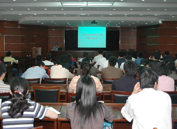 5月8日下午,林建忠校长在明德楼B6楼会议室,为我校教师做了题为《体制内的教师怎样不被边缘化》的讲座。讲座现场人头攒动,全校教师自发来到这里,满怀着热情,听取了林校长的激情演讲。 林校长以“学校好、人幸福”为切入点展开讲座,着重阐述了作为体制内的教师如何实现马斯洛需求层次论中尊重需求。他指出,实现尊重需求主要涉及到制度与体制、付出收益、社会声望等三个方面。在谈到制度与体制时,林校长重申了到2018年把学校建设成教学为主、科研为辅,教学科研协调发展的教学研究型大学的总体目标,并从价值取向方面介绍了985大学、211大学、学位点、人才队伍、教学名师等各种考量大学的要素。在阐述付出收益时,林校长强调了优质付出和有效付出两个概念。他说,做一名优秀、至少是合格的教师,首先过好教学关这一基本要求,要有职业使命感、职业素质、职业理念、职业智商、职业快感;其次是要从事科研,要重视项目、论文、著作、专利、获奖等考量要素。在优质付出的同时要达到有效付出,要实现工作效益的最大化,在教材、论文、项目申请时要资源调动,充分利用成果;要契合考量要素,做一些具有认可度、显示度、合理频度的成果。 在讲座最后的社会声望部分,林校长介绍了我校在学生培养层次、学科层次、科研平台等三方面的实力,阐明了体制内与业务水平相关的评定与头衔,并指出了教师如何借助学校实力更好的提高个人声望,进而进一步增强学校实力。 林校长的讲座,为教师们指明了从事教学、科研的努力方向,使大家了解了体制内教师不被边缘化的对策,进一步增强了教师的自豪感和归属感。 附:《体制内的教师怎样不被边缘化》讲座PPT详见人事处网站》