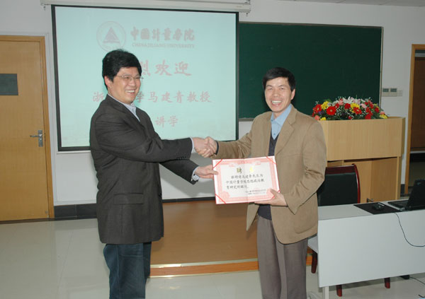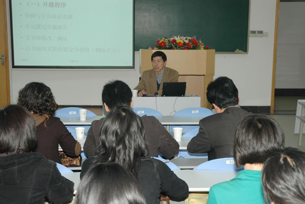 应我校思想政治教育研究所的邀请,4月22日,全国大学生心理咨询专业委员会副主任,浙江省高校心理健康教育研究会理事长,浙江大学心理咨询中心主任,浙江大学法学院思想政治教育系副主任,马克思主义理论与思想政治教育研究所副所长,心理咨询方向硕士研究生导师马建青教授来我校讲学。学校思想政治教育学科硕士研究生生导师、06、07级研究生和即将入学的08级研究生以及参加2005级本—硕创新计划的学生到场聆听了讲座。 马建青教授讲座的主要内容是开题报告与学位论文的撰写。在讲座中,马建青教授结合论文写作的要求和特点,从论文开题、论文撰写、论文答辩等三个方面进行了详细的讲述,就论文写作过程中应注意的问题进行了深入浅出的分析。马教授提供的案例丰富,幽默风趣,博得聆听者的热烈掌声;马教授深厚的学术功底和娓娓道来的讲课风范赢得了大家的一致好评。讲座结束后,马建青教授还热情解答了学生的各种提问。 校党委副书记、思想政治教育研究所所长徐涌金亲自主持了讲座并向马建青教授颁发了聘书,聘请马建青教授担任我校思想政治教育研究所顾问。