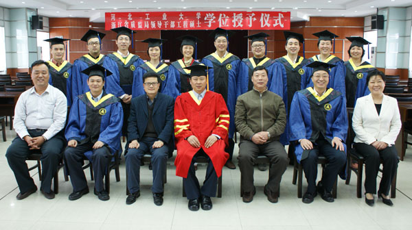 4月19日,由河北工业大学主办、我校协办的浙江省质量技术监督局领导干部工程硕士研究生学位授予仪式在我校明德楼B6楼会议室隆重举行。河北工业大学副校长刘波、研究生学院副院长孙卫忠和管理学院高迎平教授专程从天津远道而来出席授予仪式,省质监局副局长唐全东、李会光和总工程师陈振华出席授予仪式。我校党委副书记陶伟华应邀参加了授予仪式。 我校党委副书记徐涌金、陶伟华与河北工业大学和省质检局的领导进行了座谈,徐涌金副书记对客人的到来表示热烈欢迎,向河北工业大学在学科建设和举办工程硕士班过程中给予我校的大力支持和帮助表示衷心感谢,就我校与河北工业大学和省质检局的进一步合作进行了交谈。他向客人介绍了我校近年来的发展情况,今年是中国我院学院建校30周年,他代表学校欢迎各位领导届时来校指导工作,继续关心和支持我校的发展。 学位授予仪式上,孙卫忠副院长代表河北工业大学宣读了工程硕士学位授予决定,刘波副校长为学员颁发学位证书、拨正流苏并合影留念。 我校党委副书记陶伟华代表学校对省质监局领导干部工程硕士研究生获得学位表示祝贺。他指出,这次省质监局领导干部工程硕士研究生班,不仅为我校提供了向河北工业大学学习的机会,加强了我校与省质监局的联系与合作,同时也为我校探索为全国质检系统开展长期的高层次人才培训和学历教育积累了经验。 河北工业大学副校长刘波在授予仪式上发表了讲话。他对浙江省质量技术监督局领导干部工程硕士班学员克服工作困难,通过3年的刻苦学习获得学位表示祝贺;对浙江省质量技术监督局和中国我院学院在办学过程中给予的大力支持和帮助表示感谢。 浙江省质量技术监督局唐全东副局长代表省质监局对学位获得者表示祝贺,对河北工业大学和我校给予的支持表示感谢。唐全东副局长指出,该研究生班有效地改善了全局干部学历层次,提高了省质监局干部队伍的学历和素质,对有效实施省质监局的“人才强局”战略,提高省质检系统执政能力建设具有极大的促进作用。他希望三方能进一步加强联系与合作,继续开展工程硕士研究生班教育,支持省质检局的人才建设。 浙江省标准化研究院院长傅丹萍代表学员进行发言,对河北工业大学、省质检局和我校创造的学习机会表示感谢,对不辞辛劳来杭授课的教师和导师深表谢意,表示要把所需知识应用到日常工作中,为浙江省和全国的质检事业做贡献,更好的服务社会。