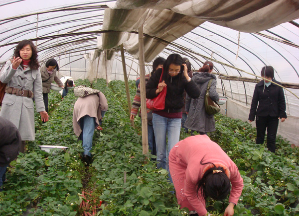 材料学院和理学院联合组织女职工到元成村草莓基地摘草莓