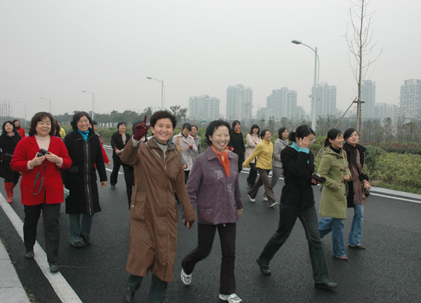 下午1:00,两辆大车准时从校门口出发驶向钱江大道,一路上女教职工们欢声笑语,纷纷感慨着下沙的面貌的巨变。此次活动沿下沙新建钱江大道步行约3公里,用时40分钟左右,参加活动的女教职工们个个精神饱满,心情舒畅,洋溢着喜悦和激情。大家健步行走在宽敞的沿江大道上,欣赏着沿途的风景,感受着下沙日新月异的发展变化,言语中表达了广大女教职工对北京奥运会的企盼和祝福,同时也庆祝这属于自己的节日。