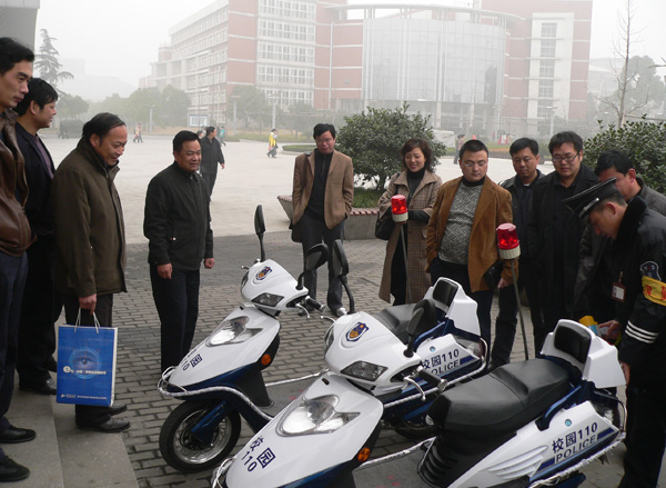 座谈会后,考察团在冯时林副校长的陪同下参观了我校地下车库、图书馆、校园“110”监控中心,并就监控设施建设等进行了交流。考察团对我校的技防建设、校卫队建设等工作给予充分肯定。