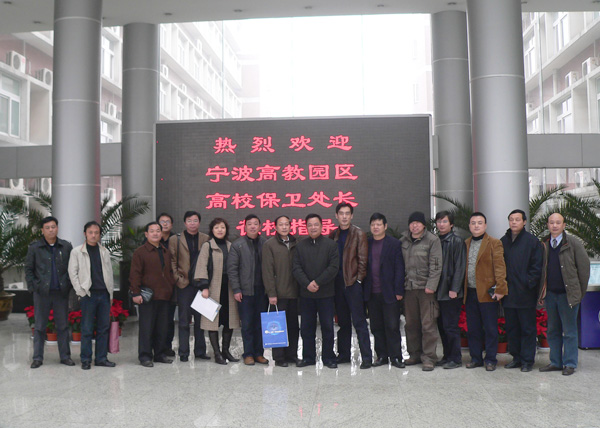 元月八日上午,宁波高教园区9所高校保卫处负责人一行16人来我校考察交流。双方围绕我校创建“平安校园”和物防、技防建设等相关安全工作进行了座谈。座谈会由副校长冯时林主持,保卫处处长杨立军、副处长杨啸铭等参加了座谈。