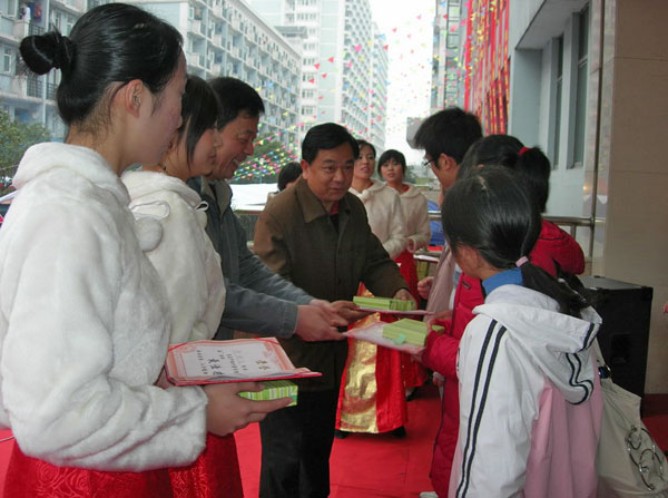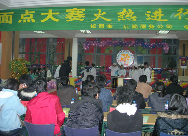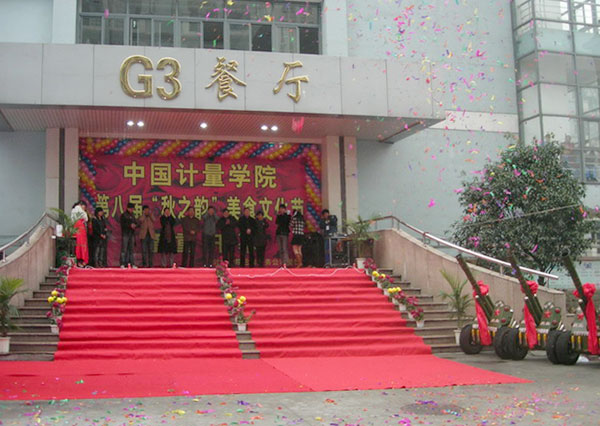 12月6日下午,六门“迷你军式礼炮”整齐的排放在我校生活区G3餐厅门口,吸引了无数过往行人的眼球,让中国我院学院后勤服务公司餐饮服务中心主办、校团委和社区学生委员会膳管会协办的第八届“秋之韵”美食节更添了几分惊喜。 3:30左右,在活泼的音乐中,“秋之韵”美食节拉开了帏幕。副校长张硕年、冯时林应邀出席美食节开幕式并剪彩。党委宣传部部长毕晓光、学生处处长范庆瑜、后勤产业管理处处长杜建雄、校团委副书记杨玉书等嘉宾以及后勤服务公司负责人参加开幕式,别出心裁的落地式烟花的绽放以及“迷你军式礼炮”的鸣放为本届美食节增添了几多新奇。 开幕式上,学校以及后勤服务公司负责人为在本学期后勤服务公司、校团委以及社区学生委员会联合举办的“走进餐厅体验生活”活动中获奖的学生颁奖。随后的学生现场面点大赛及多姿的才艺表演为本届美食节增添了更多的活力和色彩。 热气浓浓,香味浓浓,初冬的寒风并没能挡住美食节火热的人气。开幕式余音未尽,南北小吃的香味已经淹没了整个现场,大家胃口大开,迫不及待地融入了中华美味中。校领导和嘉宾也来到了小吃区,兴致勃勃地偿起了烤羊腿和麻辣烫,与全校学生共同品味中华美食。