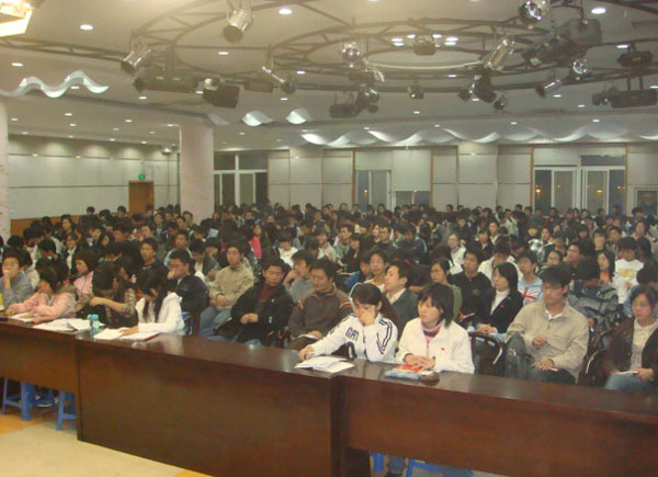 11月14日晚,校党委书记于永明为党校第四期预备党员培训班学员作了“科学发展观”专题学习辅导,来自全校各二级学院的七百余名学生预备党员参加了培训。