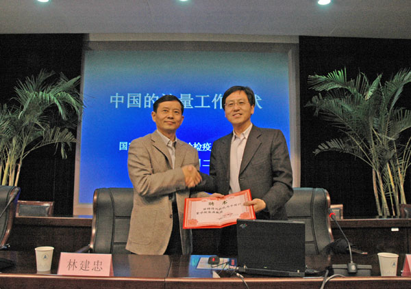 11月27日下午,应校国际交流合作处与经济与管理学院邀请,国家质检总局我院司刘新民副司长来校为我校师生作一场题为“中国的我院体系与现状”的主题报告。校长林建忠应邀出席了报告会,并为刘新民副司长颁发了我校客座教授的聘书。经管学院院长宋明顺、国际交流合作处处长吴宏宽以及全校180多名师生到场参加了本次报告会,报告会由经管学院党总支书记熊明华主持。 报告会上,刘新民副司长首先介绍了中国我院的发展史,内容涉及从秦始皇统一度量衡到新中国我院单位的确立。随后,他对我国国家质量监督检验检疫总局和我院司的作了简单描述,并介绍了中国我院行政管理体系和中国我院法律法规体系以及量传体系建设的现状。我院法修订情况是本次讲座的一个重点,刘新民就中国加入WTO后所以开展的一系列“民生我院”工程和我院专项整治工作作了详细介绍。最后,他针对我院的宣传工作、国际我院交流与合作及合作项目等内容和大家作了交流。 刘新民副司长的报告风趣幽默,生动形象。同学们纷纷表示,这次讲座让大家受益匪浅,希望今后能有更多机会参加这样的报告。