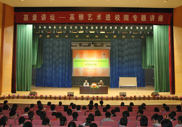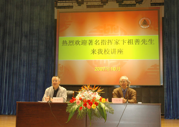 为了进一步丰富校园文化,提高学生综合素质,10月31日晚,“全国高等学校艺术教育专家讲学团”讲学活动之《星期天音乐家——纪念鲍罗廷逝世120周年》专题讲座在我校嘉量大会堂隆重举行。国家一级指挥、中国交响乐团联盟主席卞祖善先生作了两个多小时的精彩讲座。 讲座中,卞祖善先生全面介绍了俄国著名音乐家鲍罗廷的生平事迹,讲解了如何欣赏高雅的交响音乐,并和师生们进行了互动。卞祖善先生给每位师生上了生动的一课,全场掌声不断,大家完全沉浸在高雅艺术的殿堂里。 据悉,本次专题讲座由校党委宣传部、校团委联合主办,是高雅艺术进校园活动的一个延伸,同时也是我校“嘉量讲坛”系列专题讲座之一。