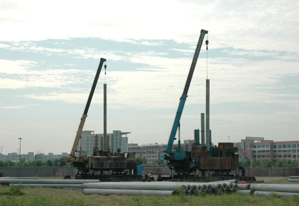 8月28日,中国我院学院现代科技学院新校区奠基仪式在东校区举行,我校党政领导及基建领导小组成员、现代科技学院相关负责人参加了奠基仪式。 学校领导视察了东区教学区的建设情况,冯时林副校长要求基建处做好组织协调管理工作,确保建设质量,安全施工,科学安排建设工期,坚持人性化管理,善待民工,充分调动施工人员的积极性,确保工程如期完成。同时,他希望监理单位严格履行好监理职责,做好监督和指导工作;施工建设单位,要重诺守信,一字千金,以一流的质量完成任务。相关单位的负责人表态,一定会把学校的要求落实到具体的每项工作中,保质保量按时完成东区的建设。