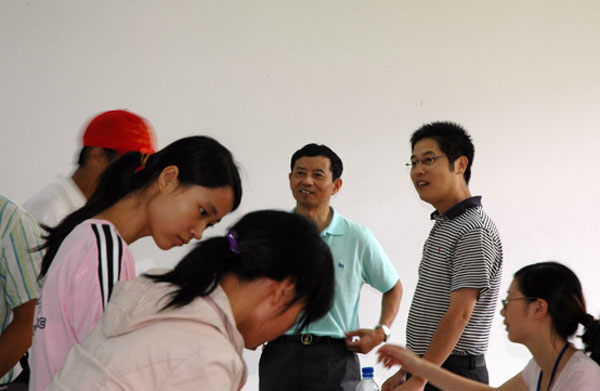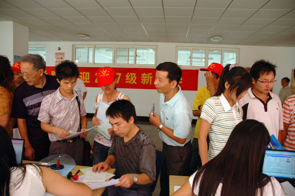 9月15日上午,校党委书记于永明、校长林建忠分赴学校东、西两个校区,检查迎新工作情况。于永明书记在东校区详细询问了基础设施建设和条件保障情况,并深入到学生宿舍,亲手检查了水、电设施,他要求大家要树立服务意识和责任意识,为学生提供优质服务,确保迎新工作高效、有序进行。林建忠校长在环宇楼一楼大厅对新生缴费点和各二级学院迎新点进行了巡视,对今年我校简化新生报到手续工作给予了肯定,同时还与新生家长进行了交流。