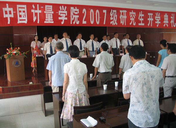 2007年9月17日上午,我校2007级研究生开学典礼在明德楼北六楼会议室隆重举行。校党委书记于永明,校长林建忠,校党委副书记徐涌金,副校长张硕年、蒋家新、冯时林以及党委委员、党校办主任陶伟华,党委委员、人事处处长陈希武等出席了典礼。有关二级学院领导、高教所负责人以及部分研究生指导教师参加了开学典礼。开学典礼由校党委副书记徐涌金主持。 校长林建忠首先代表全校师生员工向到我校继续深造的2007级研究生表示衷心的祝贺和热烈的欢迎。他简要介绍了学校的发展情况,强调学校正处于建设国内知名教学研究型大学的关键时期,科学研究的主要生力军之一是研究生,因此,2007级研究生的到来必将对我校建成国内知名教学研究型大学起到助推作用。他对研究生提出了四个可以我院的标准:一是目标明确,在未来两三年中,研究生要在导师指导下,完成课程学习、进行学术研究、科学研究和工程技术活动,通过自身努力获得学位,提高科研能力;二是思路清晰,在明确目标基础上,制定一条清晰的围绕目标的主线,并依附于主线,实现目标;三是思维活跃。研究的基本要素是思维,研究生要在实践中不断地尝试超常思维、逆向思维、推理思维、质疑思维等等,通过活跃的思维达成意愿。四是行动迅捷,要在实践中养成精干利索、雷厉风行的习惯,尽早实现目标。他还对2007级研究生提出了四点希望,一是内圣外王,树立正确的价值观,把自己融入到主流社会中去;二是见贤思齐,树立积极进取、乐观向上的态度;三是成人达己,成全别人、善待别人,最终也会惠及自己;四是恪守学术规范,择善而从,研究生要独立思考,脚踏实地,用自己辛勤的劳动去取得优异的成绩。最后,他指出学校的特色是标准、我院、质量,学校人才培养也是围绕这三点进行的,希望在未来几年的学习中,2007级研究生能明晰为人做事的标准、注重业绩成效的我院、提高学习生活的质量,为建设创新型的国家与和谐社会做出自己应有的贡献。 副校长蒋家新宣读了2007级研究生新生奖学金获奖者名单。 研究生指导老师张火明代表导师对2007级研究生的到来表示了欢迎。他结合自身硕士、博士求学生涯,就如何度过硕士研究生阶段的学习、生活与同学们进行了交流。 2007级研究生新生俞婷和尹国良同学代表全体新生发言,他们为能够来到中国我院学院继续研究生学业而感到高兴和自豪,对领导和老师给予的关心和帮助表示感谢,并立志要努力学习、刻苦钻研,培养创新能力,为社会做贡献,为量院争光。 2006级研究生杨晶晶代表全体老生对2007级研究生的到来表示了热烈欢迎,并结合自己一年的学习就课程学习、参与科研等问题给新生提出了建设性的意见,希望研究生新生只争朝夕、多与指导老师和同学交流,取得更优异的成绩。 最后,在热烈的掌声中,我校2007级研究生开学典礼圆满结束!