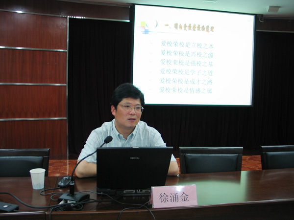 徐涌金教授首先通过我校对学生抽样调查的案例,指出加强爱校荣校教育的重要性,并从六个方面对爱校荣校进行了详细的阐述。