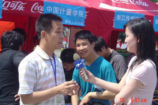 为展示我校“新苗人才计划”项目开展情况,我校精心制作了展板,并挑选了两个项目----“基于RFID技术的嵌入式家犬信息采集系统”和“新型夜光玩具”进行参展,项目得到了科技厅和团省委领导的关注,也吸引了不少群众前来咨询,展位上不时有人来了解情况。其中“基于RFID技术的嵌入式家犬信息采集系统”项目负责同学付科源还接受了浙江卫视的现场采访。