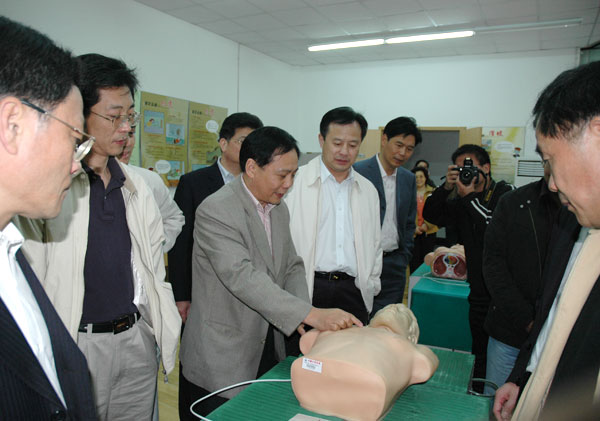 4月24日下午,省委党校领导干部进修班学员来我校参观指导,校党委书记姚盛德、校长林建忠等学校领导与他们进行了亲切座谈。 姚盛德书记对省委党校领导干部进修班的学员们抽出学习时间来我校参观指导表示热烈的欢迎,并对各位领导过去对中国我院学院的帮助表示感谢,希望将来能得到大家一如既往的支持,扶持我校不断发展。 会上,林建忠校长利用PPT对我校的现状和发展进行了介绍,让在座的各位进修班的学员对我校的情况有了大致的了解。 会后,在学校领导的带领下,客人们参观了我校东磁研究院、省“重中之重”学科建设基地、体军部心肺复苏模拟室以及体质健康监测监控研究所。通过介绍和实地考察,省委党校领导干部进修班学员们对我校有了全方位的认识,大家纷纷对我校的发展表示了赞赏和肯定。