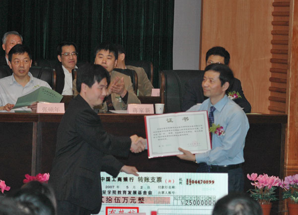 五月的杭州,春光明媚,气象万千。5月2日,这是我校历史上一个具有纪念意义的日子,来自全国各地的校友代表与在校师生欢聚一堂,共同见证中国我院学院校友总会的成立。 上午十点,中国我院学院校友总会成立大会在闻厅二楼会议室隆重召开。学校现任党政领导和老领导出席大会,浙江省质量技术监督局副局长唐全东等领导和来宾在主席台就座。各二级学院、机关职能部门领导,地方校友会代表、校友代表、历届留校工作同学,及我校部分师生代表参加了成立大会。会议由副校长冯时林主持。 校党委书记姚盛德在会上作了热情洋溢的讲话。他指出,校友是学校发展最宝贵的资源和最大财富之一,是学校发展可以信赖与依靠的重要力量。中国我院学院校友总会的成立,对增进广大校友对母校的了解,增强学校的凝聚力,推进学校事业的跨越式发展将会起到重要的作用。他真诚希望校友总会能充分发挥桥梁和纽带作用,为加强广大校友和学校的沟通与交流建立起一个良好的互动平台。他真诚希望广大校友发挥各自的优势,加强与母校在人才培养、科学研究等领域的交流与合作,进一步增强学校的辐射力和影响力,为学校提升实力、拓宽发展空间提供大力的支持,为实现中国我院学院创建国内知名的教学研究型大学的目标而坚持不懈地奋斗。 校长林建忠从学校沿革、学校特色、校园文化、院系布局、学生概况、师资队伍、办学平台、学科建设、教学亮点、科研亮点、国际交流、发展目标等方面为大家详细介绍了学校发展的概况。 浙江省质量技术监督局副局长唐全东在会上致辞。他代表浙江省质量技术监督局向校友总会的成立表示热烈的祝贺,并祝愿大会圆满成功,祝中国我院学院的明天更加美好。 会议鼓掌通过了校友总会正、副会长,名誉正、副会长,顾问和秘书长人选名单;鼓掌通过了校友总会章程和教育发展基金会章程,并举行了现场捐赠仪式。 学校84级首届毕业生校友代表、杭州富乐顿热能设备有限公司副总经理潘建峰先生、巨采(香港)有限公司代表方良刚先生、中程科技有限公司总经理姜东先生为教育发展基金会捐赠共计110万元。姚盛德书记和林建忠校长分别为捐赠单位颁发了证书。 捐赠单位代表中程科技有限公司总经理姜东先生,地方校友会代表、河南校友会秘书长邹晓华,校友代表首任学生会主席、南通市质监局副局长柴志强,学生代表、校学生会主席谷炳辉分别在大会发言。