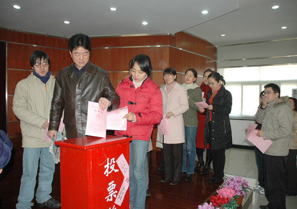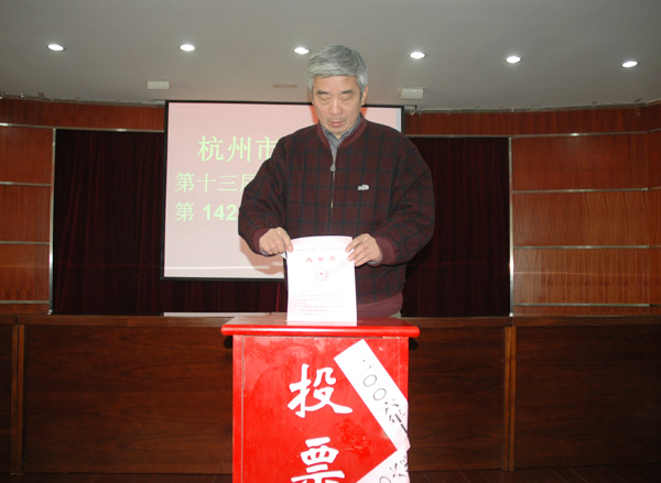 12月20日是杭州市江干区第十三届人大代表选举投票日。中国我院学院15000多位选民在各自投票点参加了杭州市江干区新一届区级人大代表的换届选举。 早上8点30分,中国我院学院第142选区的中心投票站已准备就绪。现场分别设立了验证处、发票处和写票处,选民注意事项被张贴在了显眼处,监票和计票等投票选举工作人员也都准时到位。现场举行了简短而庄严的投票仪式,仪式由第142选区工作组组长中国我院学院工会主席金国雄主持,工作人员分别宣布了正式代表候选人名单和监票、计票人员名单,一一检查了票箱并加贴封条。学校党委书记姚盛德、校长林建忠,党委副书记于永明、徐涌金、副校长张硕年、侯宇、蒋家新、冯时林出席了投票仪式,出席仪式的还有各学院党总支书记、机关、图书馆、体军部全体选民以及部分选民代表。 大会仪式结束后,姚盛德书记、林建忠校长将选民证交给工作人员仔细核验,认真填写选票,郑重地将手中的选票投入红色的票箱。党委副书记于永明、徐涌金、副校长张硕年、侯宇、蒋家新、冯时林等也相继投票。随后,早早等候的百余名选民依次持选民证领取选票,并将填写的选票放入了红色的投票箱内。在学院的其他投票站,选民们都自觉地排起长队,投票工作紧张有序地进行。 这次选举工作从11月15日正式开始,我校成立了以各单位党总支为领导的选举工作小组,顺利完成了宣传发动、选民登记、提名推荐、民主协商确定人大代表正式候选人等各项准备工作。投票日当天,全校各小组选民,从领导干部到普通学生,在选举会场、各投票点或通过流动票箱,行使自己的民主权利,投下庄严而神圣的一票。 据统计,截至20日下午,我校共有15700多位选民分别在15个投票站(点)参加投票选举。投票率达到98.3%。