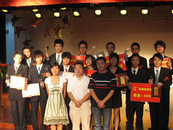 6月10日晚,校团委、校学生社团联合会在启明活动中心多功能厅隆重举行中国我院学院第三届星级学生社团颁奖典礼。校团委书记巢岺、校团委副书记杨玉书、应焕桃、各学生组织负责人、学生社团负责人及各协会成员出席了大会。 为更好地发挥学生社团在校园文化建设中的重要作用,进一步支持、鼓励、引导、帮助学生社团健康发展,以评促建,校学生社团联合会进行了第三届星级学生社团的评比。自4月份评比活动启动以来,得到了校院二级学生社团的广泛关注和热情参与,共有44个社团参评。在评委会评分、社团风采展示、公开答辩、民意调查等的基础上,零点调查协会、子午剧社、管理协会、心理协会、心青手语社等五个协会脱颖而出,荣获了“五星级学生社团”荣誉称号;英语协会、吉他协会、棋类协会等十个协会荣获“四星级学生社团”荣誉称号。 本次活动增加了社团风采展示和“我最喜爱的学生社团”评选等环节,得到了广大同学的积极参与和热情支持。据统计,“我最喜爱的学生社团”通过网站、短信、现场等投票方式累积的有效票数达8911票,最终子午剧社荣获“我最喜爱的学生社团”荣誉称号。 颁奖仪式上,巢岺作了即席讲话,希望受到表彰的社团,珍惜荣誉,继续在社团建设和发展中发挥示范作用。希望各学生社团进一步总结经验,探索机制,创新载体,为推动学生社团活动深入持久的开展和素质教育的全面推进做出积极的贡献。