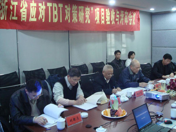 2006年12月22日,我校承担的浙江省科技计划重点项目“浙江省应对贸易技术壁垒的对策研究”通过省级验收和评审。我校科技处处长陈乐、副处长冯爱明和管理学院的部分教师出席了会议。鉴定委员会由来自浙江省科协、浙江省质量技术监督局、浙江大学、浙江工业大学、杭州电子科技大学、浙江理工大学和浙江财经学院等相关单位的7位专家组成。 专家们在听取了项目组负责人宋明顺所做的研究总结报告,审阅了研究报告、查新报告和有关资料,一致同意该项目通过省级验收和评审。专家一致认为该项目研究达到国内领先水平。