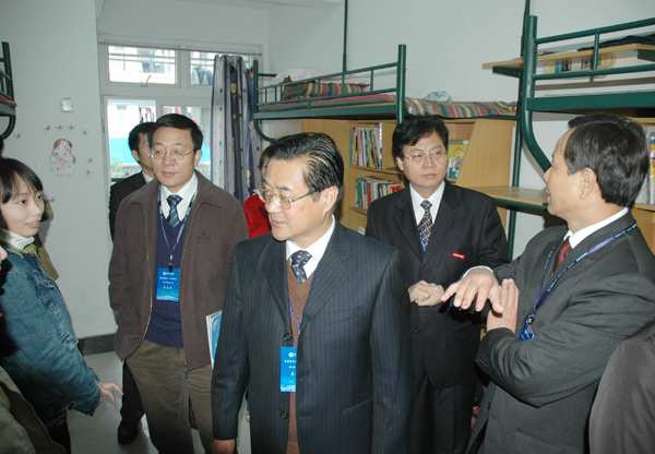 11月27日上午,评估组全体专家在我校领导的陪同下,集体参观考察了我校的公共办学设施,对学校的教学条件进行全面评估。 在逸夫图书馆,专家们听取了图书馆馆长夏哲雷教授关于学校图书馆的总体情况汇报,包括图书馆的面积、机构设置、服务项目及馆藏书籍等。专家们参观浏览了图书馆的主书库及电子阅览室,并与正在阅览室查阅资料的学生们亲切交流,考察了我校学生查阅文献资料的能力。随后,专家们还兴致勃勃地登上了图书馆顶楼俯瞰校园全景,在观赏过程中,我校林建忠校长还向专家们介绍了学校富有文化底蕴及鲜明特色的楼名、路名、景观名的命名涵义。 在天健体育馆,专家们详细考察了学校的体育教学、科研情况及体育场馆器材等教学硬件设施情况。在体育馆大厅陈列的体育特色教学展板前,专家们翻阅了学校体育军事部的宣传册,并听取了体军部主任季建成教授的汇报和介绍。在学生体质健康测试室、安全救护模拟室、体质健康监测监控研究所、健身房和训练室,专家们饶有兴趣地参观了各类教学设施和仪器设备。在考察中,专家们对我校体育“安全与防卫”的特色课程表示了浓厚的兴趣,体军部特意向每位专家赠送了自编的国内首本《安全教育与正当防卫》教材。 在学生公寓,专家们通过观看宣传片了解了我校学生公寓管理中心的基本情况,并走访了学生寝室。在3号楼学生公寓内,寝室门上的“党员寝室”牌引起了专家的注意,专家们走进寝室,与同学们亲切交谈,并仔细询问了她们的专业学习和大学生活情况。 学校师生员工的热烈欢迎评估组专家的考察和指导,专家们严谨认真的工作态度和一丝不苟的工作作风给学校师生留下了深刻的印象。