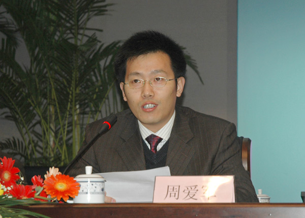 教育部评估中心专业与专项评估处处长周爱军在讲话中指出,开展高等教育评估是我们落实党中央、国务院提高高等教育质量精神的重要战略。教育部开展本科教学工作水平评估就是要进一步落实本科教学工作的中心地位,加强教学基础建设,规范教学管理,提高人才培养质量。这项工作的开展取得了显著的成绩,促进了学校明确办学指导思想,抓地位、搞规划、谋发展,明显改善了办学条件,规范了教学活动,优化了育人过程。广大学生,包括我们中国我院学院的广大学生都将成为评估工作的最大收益者。他希望评估工作能让教育部满意、学校满意、专家满意,并预祝此次专家进校考察评估圆满成功。
