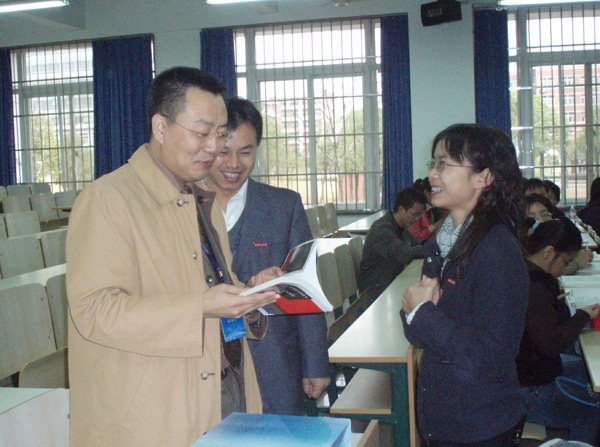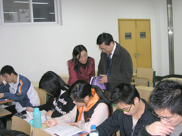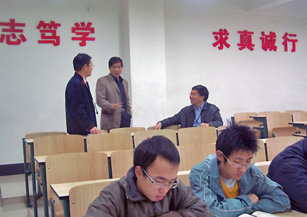 课堂是教学工作的前线,直接反映本科教学质量。11月27日上午8:00分至8:45分,评估组专家们纷纷走进学生课堂听课,全面考察教学情况,听取了复变函数、磁性材料、机电一体化系统设计、电磁场理论与微波技术、信号与系统(A)、毛泽东思想概论、客户关系管理等七门课程。 我校各教学单位对专家来到我校进行评估,并走进学生课堂听课,直接了解和真实感受我校本科教学第一手情况,都十分重视,作了认真的准备。还未上课,所有的学生都自觉地在教室里作课前准备。当专家来到教室时,学生们不约而同地鼓掌欢迎。 在整个听课过程中,专家们不仅认真听取老师授课,还利用课间时间与教师、学生进行交流,询问教师教学日历,询问学生学习情况,深入、全面地了解了我校的教学情况。课堂上,授课教师教学方法新颖,教学手段先进,注重与学生互动交流,课堂教学气氛活跃,展现了我校师生的良好风貌。 评估专家组组长易佑民教授在环宇楼A302教室听了理学院丁春梅老师的《复变函数》课。丁春梅老师在授课中注重与学生交流互动,课堂气氛良好。在教室里,易佑民教授与学生进行了亲切交谈,翻阅了教材,询问了学生的学习情况。课后,易教授与丁春梅老师亲切交流,对丁老师的教学水平和技能给予了很高的评价,指出她对教学内容的关键点和重点把握到位,讲解清晰。 评估专家组副组长张新义教授在环宇楼C304教室听了机电工程学院陈红岩老师讲授的《机电一体化系统设计》课。陈红岩老师利用多媒体讲授了“相扑机器人”设计制作的原理和要点,课堂上师生互动,气氛融洽。课后,张新义教授还与陈红岩老师亲切交谈,陈红岩老师向他介绍了我校学生参加机械设计竞赛的情况,张教授对我校学生在这方面取得的突出成绩表示肯定。 评估专家韩焱教授来到环宇楼C603听取信息工程学院叶强老师的《电磁场理论与微波技术》课程,受到了教师和同学们的热烈欢迎。韩教授认真地听取了讲课,对部分重点做了仔细的记录,并在课后与叶老师做了简单的交流。 评估专家杨景海教授来到格致中楼603教室听课。上课教师刘亚丕博士和2003级应用物理1班的学生早早来到教室,体现了我校良好的教风学风。刘老师和全体学生对评估专家组成员杨景海教授的到来表示了热烈的欢迎。刘老师还将上课教材交与杨景海教授,请他给予指导。 评估专家蔡卫教授到达翔宇楼205教室,先与人文社科学院《毛泽东思想概论》授课教师薛兆瑞老师进行了课前交流,随后听了课。 评估专家孙国辉教授在翔宇楼105教师认真听取了管理学院曾宇蓉老师讲授的《客户关系管理》课,并在课前就教材、考试形式等问题与曾宇容老师进行了亲切的交谈。 评估专家高益庆教授来到赛博北楼B103听课。高教授与授课老师金宁亲切握手,并认真听取了一堂《信号与系统》课程。课间,高教授向金宁老师简单地了解了所听课程和专业建设的相关情况。