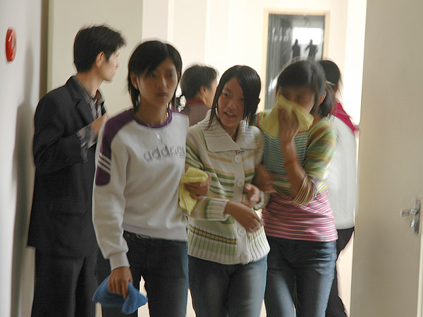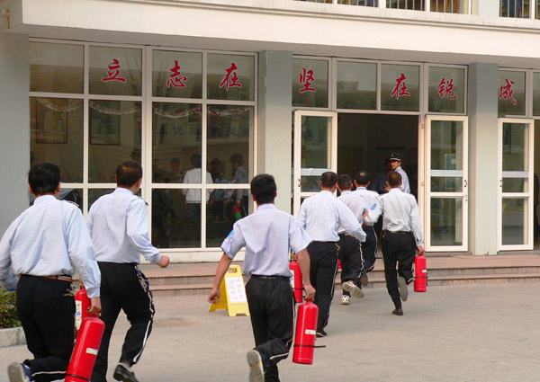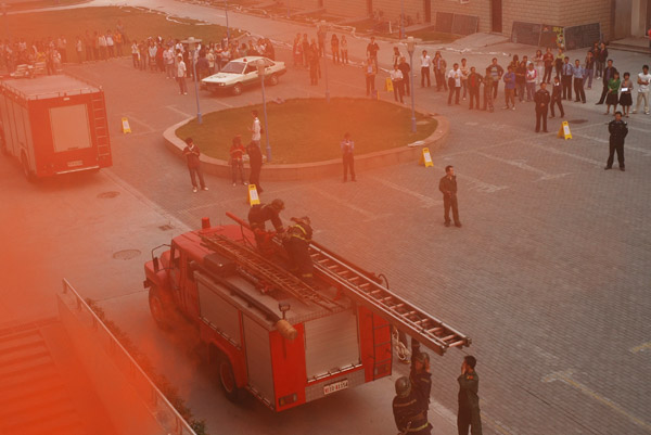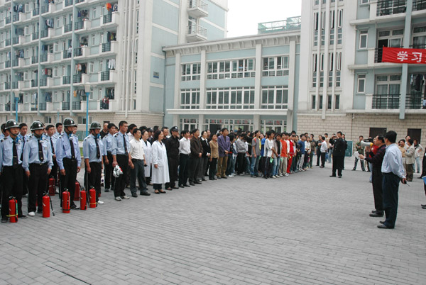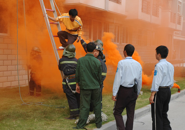 我校举行学生公寓高层模拟火灾灭火和疏散演习活动
