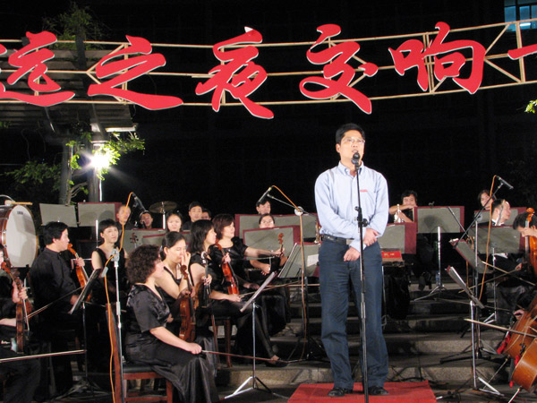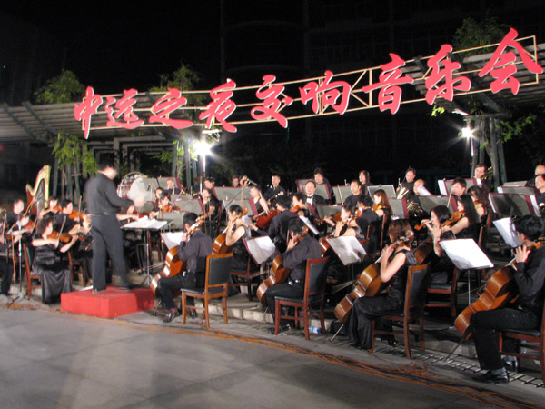 9月22日晚,启明广场灯影摇曳、乐声环绕,数千名新生共聚在这里,享受了一场音乐的盛宴。 在国庆、中秋即将来临之际,由校团委、中远后勤服务公司、校学生会主办的“中远之夜”交响音乐会如期举行,浙江歌舞剧院交响乐团的精彩演出让初入大学的06级新生感受到音乐的魅力,同时也感受到了大学校园的文化氛围。 校党委徐涌金副书记在晚会上致辞,他代表学校向全校同学特别是06级的新生表示了亲切的慰问和中秋佳节的祝贺。他希望同学们在这“每逢佳节倍思亲”的日子里,在学校的学习、生活中,体会到家的感觉,尽快融入到量院这个大家庭中。 当优雅的乐曲环绕在启明活动中心的上空,当《红旗颂》、《蓝色多瑙河》、《梁祝》、《良宵》等经典名曲回响在同学们耳际的时候,带给大家的绝不仅仅是一种在音乐中的陶醉。 作为我校新生主题教育系列活动的一项重要内容,校园交响音乐会在我校已连续举办7年,通过引高雅艺术进校,使新生尽快感受到大学文化的熏陶。 接下来,校团委,校学生会将立刻推出“心系评建,共创文明”系列活动,通过评估知识竞赛、校园文明图片展、漫画展、主题演讲、征文比赛、团日活动、文明寝室评比、班级合唱比赛等一系列方式,进一步加强校园文明建设,营造积极向上、健康高雅的校园文化氛围,展现我校学生朝气蓬勃的精神风貌,迎接教育部本科教学工作水平评估。