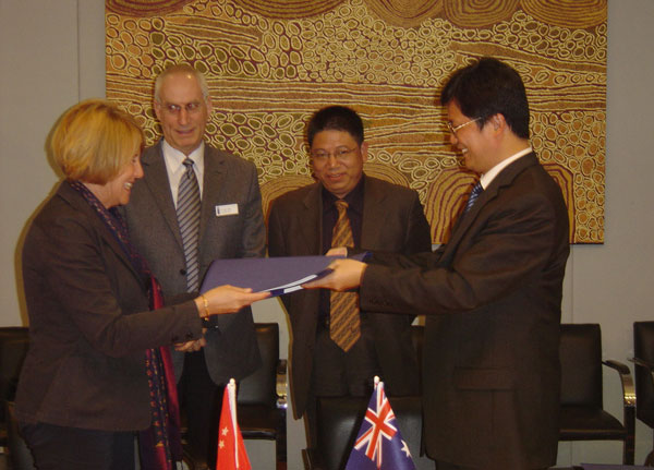 在澳期间,徐涌金副书记与堪培拉大学(University of Canberra)常务副校长沙龙.贝尔(Sharon Bell)先生等进行了会谈,双方签订了两校关于工商管理学士学位(BBA)和计算机科学与技术学士学位(BIT)学分续接与学分互认合作项目协议,并就双方履行协议内容的后续事宜交换了意见。签约仪式后,我校代表团参观了堪培拉大学校园、实验室、教室、图书馆和学生宿舍。此外,代表团还参观访问了皇家墨尔本理工大学(RMIT)、澳大利亚国立大学(ANU)和悉尼大学(USYD)。通过本次访问,密切了我校与澳大利亚高等院校的合作关系,为今后进一步的合作与交流拓展了空间。