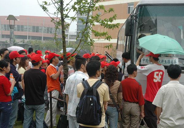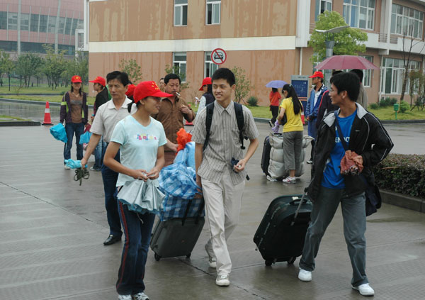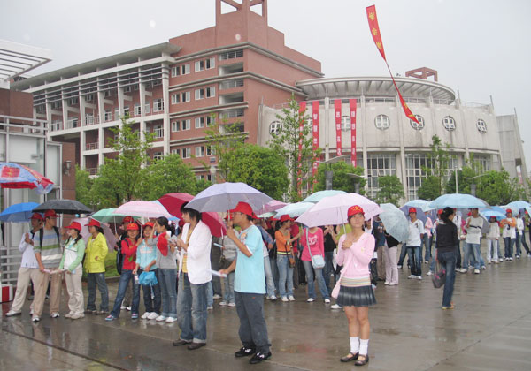 9月9日,校园内人声鼎沸、彩旗飘扬,今天是学校2006级新生报到的第一天。微凉的秋雨将夏季的炎热一扫而光,却丝毫也没有减退学校迎接新生的热情。 一早,来自全国28个省、市、自治区的新生们在家长的陪同下陆陆续续来到学校。一到校门口,拱门上“热烈欢迎2006级新同学”的标语一下子就映入了他们的眼帘。进入校园内,“喜迎八方精英才俊,培养未来社会栋梁”、“智慧在这里升华、思想在这里陶冶”等宣传横幅和竖幅分别高高地悬挂在各幢教学楼上。校园橱窗前,由党委宣传部制作的30块弘扬“标准立人、我院立校、质量立业”精神的展板向新生和家长们全面介绍和展示了学校的历史和办学成就。新生和家长们纷纷驻足观看,不时发出声声赞叹。一位新生家长在浏览了展板的内容后欣喜地说道:“学校尽管办学时间不长,却取得了如此辉煌的办学成就,把孩子送来这里,我们放心了!” 环宇楼大厅里,热闹非凡,随处可见简洁明了的示意图和引导牌,还有那些流动着的可爱的“小红帽”。新生报到入学的各项手续都在这里有序的办理着。学校工作人员的耐心讲解,志愿者们热情周到的服务以及方便快捷的办理手续,赢得了新生和家长们的交口称赞。 校党委书记姚盛德、校长林建忠、党委副书记徐涌金等学校党政领导深入迎新现场,亲自指导迎新工作,对在迎新工作第一线的工作人员进行慰问,并与新生及家长进行了沟通和交流。 学工部、团委、计财处、保卫处、后勤服务公司等相关部门和各二级学院的工作人员都放弃了周末休息,一大早就已经做好各项准备工作,守候在各自的岗位等待新同学的到来。有关部门和各二级学院的负责人也都亲临迎新现场进行指挥。尽管报到的高峰接连不断,但由于各项工作准备充分,各部门密切配合,使得迎新工作始终有条不紊。 据悉,为了让新生顺利入学,尽快熟悉和适应大学生活,校团委和学生处还为新生们编写了《中国我院学院2006新生宝典》,作为新生报道的第一份温馨的礼物,发送到他们手中。 以下是本站记者从迎新现场发回的图片报道。