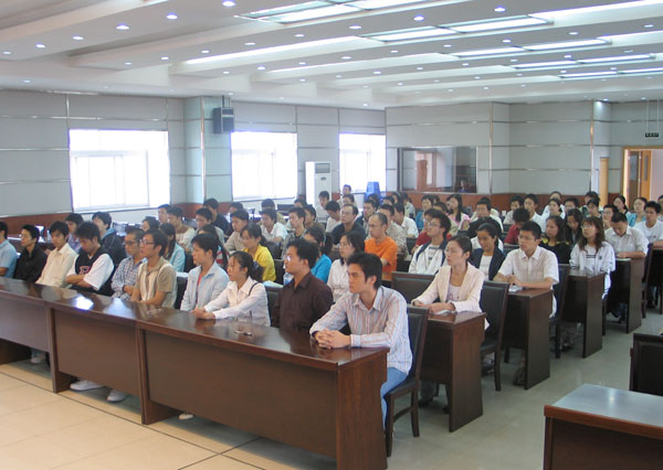 研究生指导老师代表徐时清代表指导教师对06级研究生的到来表示了欢迎。他结合自身体会,就如何度过硕士研究生阶段的学习生活与同学们进行了交流,并对同学们提出了几点希望:首先要尽快适应新的学习环境,从单纯学习的学生向合作科研的研究生转变,老老实实做人、踏踏实实做事、扎扎实实做学问;其次要学会和善于与人沟通,尤其是与导师的交流与沟通;最后要耐得住寂寞,以实验室为家,站在科学前沿,认真做科研,探索核心技术。