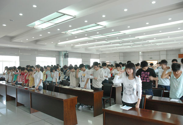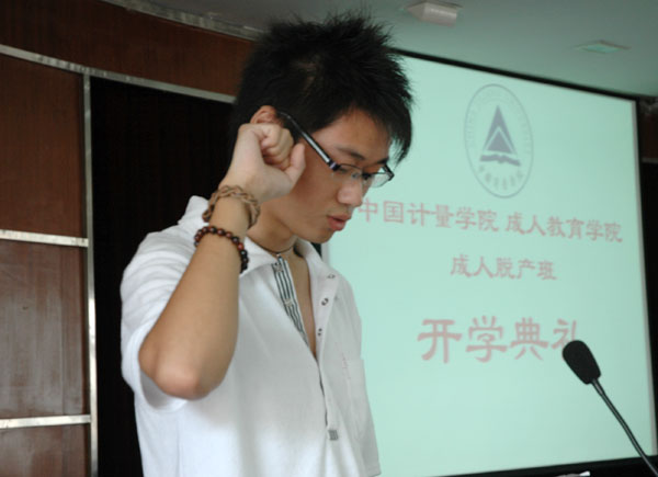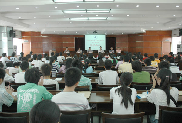 9月17日,成教学院迎来了2006级秋季入学的新生。一大早,学院领导就来到了迎新现场,相关部门工作人员以及新生班班主任也早早守候在各自的岗位。随着新生与家长的陆续到来,由学生会执委、学生党员等组成的一对一志愿服务队开始忙碌起来,他们用真心周到的服务使新生感受到了成教学院这个大家庭的温暖。另外,在做好新生报到有关工作的同时,学院领导还与新生家长进行了交流,为以后的“双互式”教育奠定了基础。 9月18日上午九点整,成教学院在明德楼B6楼会议室召开了2006级成教新生开学典礼暨入学教育大会。大会由学院党总支副书记吕青毅主持。在简短的欢迎词之后,副校长侯宇讲话。侯宇在鼓励新生奋发图强的同时,也对新生提出了几点要求,希望同学们从入学的第一天起,埋下的希望种子,经过自己辛勤汗水的浇灌,茁壮成长,喜获丰收。老生代表宋阳、新生代表蔡亚萍也分别在会上发言,王鑫带领全体新生在开学典礼上作了庄严的入学宣誓。在随后进行的新生入学教育大会上,学历教育部李小君老师和学工部李波老师分别向新同学介绍了《学生手册》中相关的学籍管理办法和违纪处罚条例,使新生对大学生活的各方面有了一个粗略的了解,对新生尽快适应学校环境、融入大学生活具有积极的促进作用。