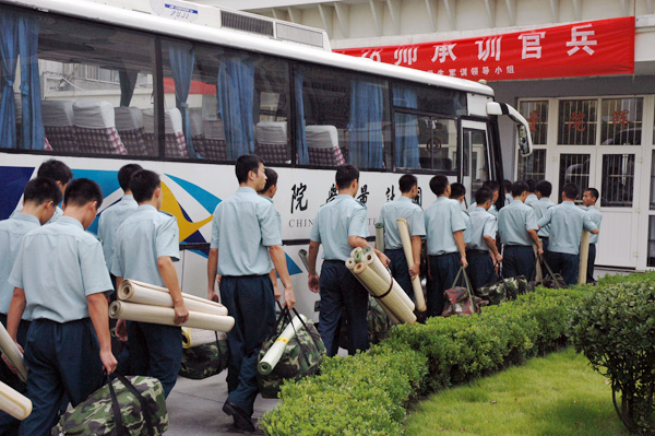 2006年8月21日上午9:30分,再次承担我校2006年度学生军训任务的空军28师100余名官兵进驻我校。