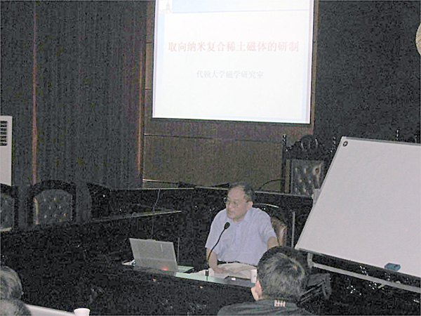 在第一天的参观中,刘世强教授高度评价了磁学实验室的先进的磁测试仪器设备以及师资队伍的建设情况,并与磁学实验室的广大教师开展了亲切的交流,充分肯定了中国以及浙江省在磁性材料生产方面优势,指出今后磁性材料今后的发展趋势在中国。第二天刘教授介绍了戴顿大学磁学实验室的情况,而后就目前磁学领域的几个热点领域,为磁学实验室的师生系统的做了如下几个方面的精彩报告:取向纳米Nd2Fe14B/a-Fe复合磁体、Pr2Fe14B/PrCo5复合磁体、高温Sm2Co17型磁体、稀土永磁的历史和未来发展。在讲座中刘教授根据自己多年的研究经历与经验,有重点有选择的针对目前上述磁学领域内的重点、难点问题进行了详细的论述。在讲座的过程中,刘教授不拘于形式,不断地和广大教师就某一个问题开展深入的探讨。