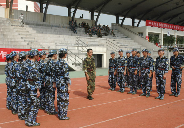 8月23日上午的学生军训动员大会结束后,教官和师生们随即开始了紧张而有序的军训工作。05级同学在军训中热情饱满,积极主动投入到各项训练中去。每天早晨不到7点,在学校南北运动场等训练地,同学们已在教官的带领下进行训练。虽然训练依然是立正、稍息、停止间转法等基本内容,可同学们的训练热情和斗志始终十分高涨。训练场上旗帜飘扬,口号嘹亮,学生们各个身姿挺拔,高标准、严要求地完成着每一个动作。他们尊重教官,服从命令,严格要求,刻苦训练,用辛勤的汗水和昂扬的斗志展示着量院学子风采。