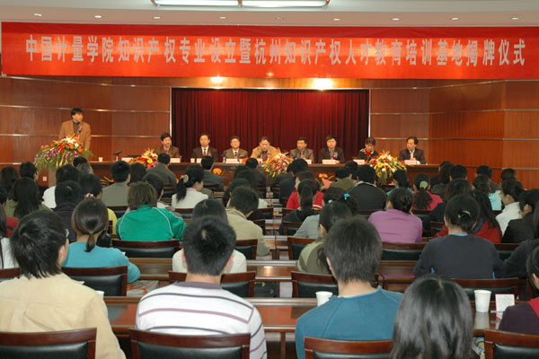 3月31日,中国我院学院知识产权专业设立暨“杭州知识产权人才教育培训基地”揭牌仪式在我校明德楼B6楼会议室隆重举行。杭州市人民政府副秘书长赵立康、浙江省知识产权局局长陈志军、杭州市科技局副局长周军等领导,以及杭州市人事局、知识产权局和下沙经济技术开发区管委会的领导出席了揭牌仪式。我校林建忠校长、侯宇副校长出席会议,会议由蒋家新副校长主持。 林建忠校长在会上致辞。他首先代表学校对杭州市科技局、知识产权局、人事局与学校合作成立“杭州知识产权人才教育培训基地”表示热烈祝贺!他指出,随着21世纪全球知识经济的快速发展,中国加入WTO、实施科教兴国战略使得加快我国知识产权人才培养成为亟需解决的问题。2004年,国家教育部、知识产权局专门颁发文件,要求各高校从战略高度认识和开展知识产权工作,加强知识产权人才的培养。浙江省作为外向型经济大省,对知识产权专门人才的需求量很大,但到目前为止,我省高校在该方面的人才培养为空白。中国我院学院作为我国质量监督检验检疫系统唯一的一所本科院校,从2004年起,就着手制定计划积极筹建知识产权专业。期间,杭州市人民政府及其有关部门对学校申报知识产权本科专业给予了大力支持,双方于2005年11月就共建“杭州市知识产权高级人才培训中心”一事达成了初步协议。2006年初,学校获得国家教育部的正式批准,成为浙江省第一所开设知识产权专业的高校。 林建忠指出,此次由杭州市科技局、知识产权局、人事局与学校合作共建的“杭州知识产权人才教育培训基地”,实现了高校与社会的资源共享,将对杭州市知识产权的发展产生巨大的助力。这一合作,是高校发展与社会需求的有机结合,很好地体现了高校通过教育和知识创新为社会服务的功能。他表示,在各方的共同努力下,学校将致力于把基地建设成集专业建设、学科建设和社会服务、政府服务于一体,知识产权领域产、学、研、政相结合的平台,使之成为国内一流的知识产权高级人才培训基地,成为杭州市知识产权领域请进来和走出去的窗口,扎根浙江,面向长三角,辐射全国。 杭州市人民政府副秘书长赵立康、浙江省知识产权局局长陈志军、上海交通大学韩长印教授分别在仪式上讲话和发言。 在一阵热烈的掌声中,杭州市人民政府副秘书长赵立康与中国我院学院校长林建忠共同为“杭州知识产权人才教育培训基地”揭牌,标志着杭州市唯一一家开展知识产权相关培训的专业机构在中国我院学院正式落成。 据介绍,“杭州知识产权人才教育培训基地”将以“杭州市知识产权高级人才培训中心”为载体进行运作,由杭州市科技局、知识产权局、人事局联合确定每年的培训计划和培训活动,并列入杭州市人事局的正式培训项目,由中国我院学院提供师资为杭州市知识产权的行政执法人员、管理人员、中介机构服务人员进行培训,为相关部门和企业培养知识产权高级人才,使“杭州市知识产权高级人才培训中心”成为杭州市知识产权发展的人才库、政府知识产权决策的咨询机构、杭州市知识产权行政管理执法服务的基地和杭州市知识产权后备人才输送基地。同时,基地将为中国我院学院知识产权专业的学生提供实习基地,并推荐杭州市科技局、知识产权局具有实务经验的专业人员为中国我院学院学生讲授知识产权实务,为学校培养知识产权实务人才创造了机会,为推动学校知识产权学科建设、增强专业教师的科研能力提供了有利的平台。 据悉,此次揭牌仪式同时也是该基地首期培训班的开班仪式。来自杭州市专利试点企业的约50名专利工作者将成为基地第一期培训班的学员。