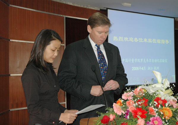 4月5日,我校在明德楼B6楼会议室隆重举行“中国我院学院罗克韦尔自动化实验室”揭牌仪式。罗克韦尔自动化驻华首席代表、副总裁孔如山和中国我院学院副校长蒋家新共同为“中国我院学院罗克韦尔实验室”揭牌。 罗克韦尔自动化驻华首席代表、副总裁孔如山先生和中国我院学院设备管理中心主任、设备处处长杨政分别在揭牌仪式上致辞。他们对中国我院学院罗克韦尔自动化实验室的建成表示热烈祝贺。 据悉,中国我院学院罗克韦尔自动化实验室是继浙江大学后,我省高校建立的第二个罗克韦尔自动化实验室。该实验室是2004年浙江省财政专项“控制技术综合实验室”的重要组成部分。作为创新型实验室,它具有开放性、先进性、模块化、实用性、科研性等特点,采用了世界最先进的控制技术和网络传输技术,无论在硬件还是软件上都达到了国内同类实验室最先进的水平。 中国我院学院罗克韦尔自动化实验室主要用于学校本科生、研究生教学和教师科研的开展,旨在提高大学生的实践技能训练,培养和造就出一批自动化领域的高素质实用人才,同时为罗克韦尔自动化的客户和公司技术人员提供培训服务,并将定期组织各兄弟院校间的实验室交流,实现知识共享。 罗克韦尔自动化是全球知名的工业自动化、控制、动力和信息系统解决方案供应商。据罗克韦尔自动化驻华首席代表、副总裁孔如山介绍,罗克韦尔自动化于1998年在中国发起了“罗克韦尔自动化与中国大学共勉”的大学合作项目,长期支持中国的高等教育事业。七年来,已与国内20多所优秀理工高校合作兴建了罗克韦尔自动化实验室。该实验室的突出特色在于为操作者提供一个全方位接触、配置和使用先进的罗克韦尔自动化产品的平台,鼓励他们实际动手操作,从而有效地帮助广大自动化技术人员和高校师生快速理解和掌握先进的自动化技术,并最终用于实际工作中。