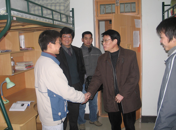 1月24日,省委教育工委副书记、省教育厅副厅长蒋胜祥在宣教处处长金一斌、副处长薛晓飞的陪同下亲切看望了我校寒假留校的学生。在农历鸡年的最后一天,校党委副书记徐涌金,副校长张硕年,党委委员、人事处长陈希武及相关职能部门负责人、部分二级学院领导看望了寒假留校的师生员工,向他们致意节日的问候和新春的祝福。中午,学校领导还到学生食堂看望了留校学生,并送上了衷心的新春祝福。
