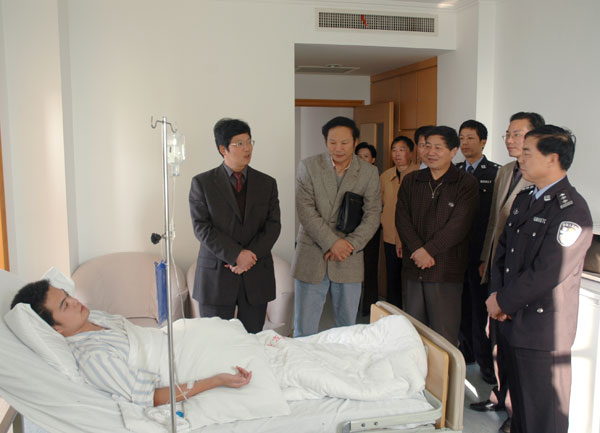近日,各媒体争相报道我校校友、宁波市公安局巡特警支队民警周挺勇擒毒贩英勇负伤的先进事迹。学校领导得知此事后专程赶往宁波医院,向周挺及其家属表示亲切慰问。 11月21日下午,校党委副书记徐涌金带领学生处、对外协作、校友工作办公室负责人以及周挺原来所在的信息工程学院的领导和班主任来到宁波市解放军113医院,探望了因和持刀歹徒英勇搏斗而身中两刀的我校毕业生周挺。 “你是中国我院学院的骄傲,学校为你感到自豪,我代表全校师生向你表示慰问”,徐涌金副书记握着周挺的手动情地说。周挺是我校2004届计算机专业本科毕业生,平时学习刻苦,各方面表现突出。 徐涌金副书记对周挺在关键时刻临危不惧,挺身而出,不怕流血,不怕牺牲的精神给予了高度赞扬,同时希望他能够安心静养,恢复健康后回母校为师生作报告。 宁波市巡特警支队负责人介绍了周挺一年多来的工作情况,他说,周挺走上工作岗位后,虚心好学,苦练基本功,已经多次和歹徒面对面搏斗。他能够具有这样的素质是与学校的教育和老师的培养分不开的。 周挺的父母介绍了周挺负伤经过及康复情况,同时向学校的领导和老师对他的精心培养表示感谢,并重点向周挺的班主任虞戟表示了谢意。他们说班主任虞戟老师经常与周挺进行谈心,了解和掌握思想动态,在学习和生活上给予了很大帮助,周挺能取得这样的成绩,有一部分要归功于虞老师。 目前,周挺的身体恢复情况良好,预计10天左右就可以出院。
